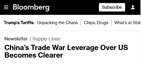 △彭博社14日刊发题为《中国在对美贸易战中愈加处于优势地位》
