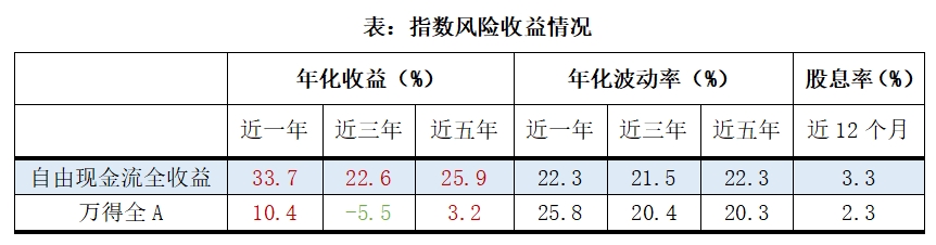 而且,与万得全A相比,国证自由现金流全收益指数能够保持相对更为稳定的收益表现,股息率也相对更高,充裕的自由现金流为增厚股东分红回报创造了良好的基础条件。