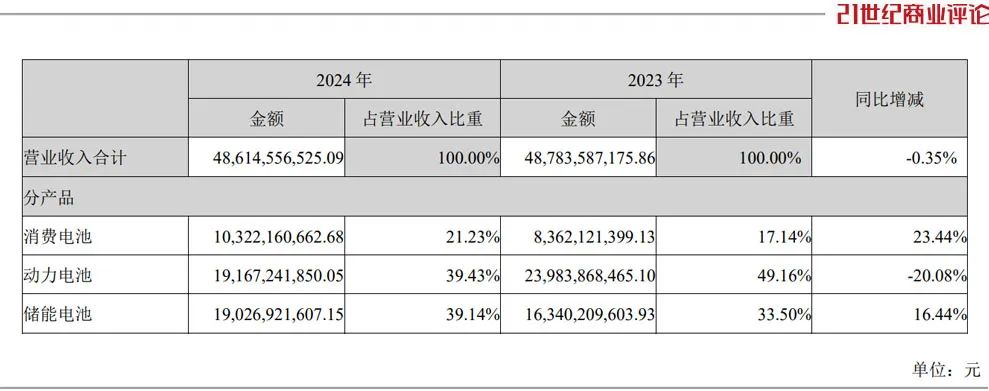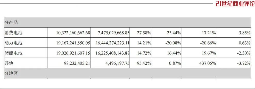 其中,储能电池业务表现亮眼,全年收入190.26亿元,而动力电池业务,收入下滑两成至191.67亿元。