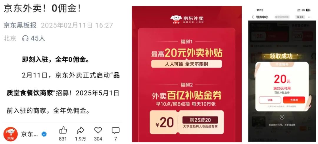 杀入外卖赛道后,刘强东来势汹汹,接连甩出0佣金、交五险一金、百亿补贴等大招,战果累累。