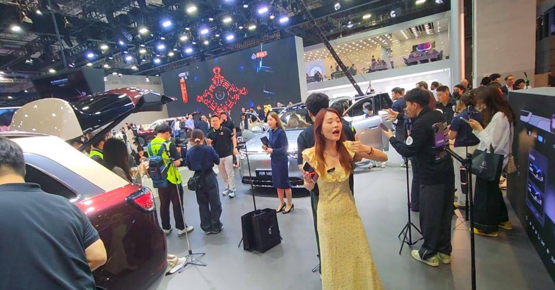 今年车展上还有车企们请来的黄渤、马东、陈道明、撒贝宁、樊振东等影视明星亮相带货。车圈老板们也没闲着,李斌在乐道L90发布会cosplay“钓鱼佬”、何小鹏让机器人当“车模”、李想找人演示“摔”MEGA车门……除此之外,“蹭”车展热度的也有。今年周鸿祎再次“身披红袍”跑到广汽、小米、北汽等展台,并买了台BJ40。但很显然,去年在车展上“翻江倒海的红衣大叔”,今年受到的关注度远小于去年了。