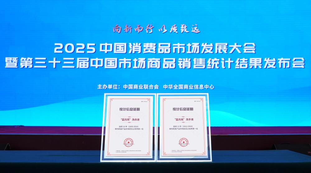 近日,中华全国商业信息中心统计的结果显示,2024年蓝月亮摘得洗衣液、洗手液同类产品市场综合占有率第一。至此,蓝月亮在此两大品类中,已分别蝉联16年和13年冠军。