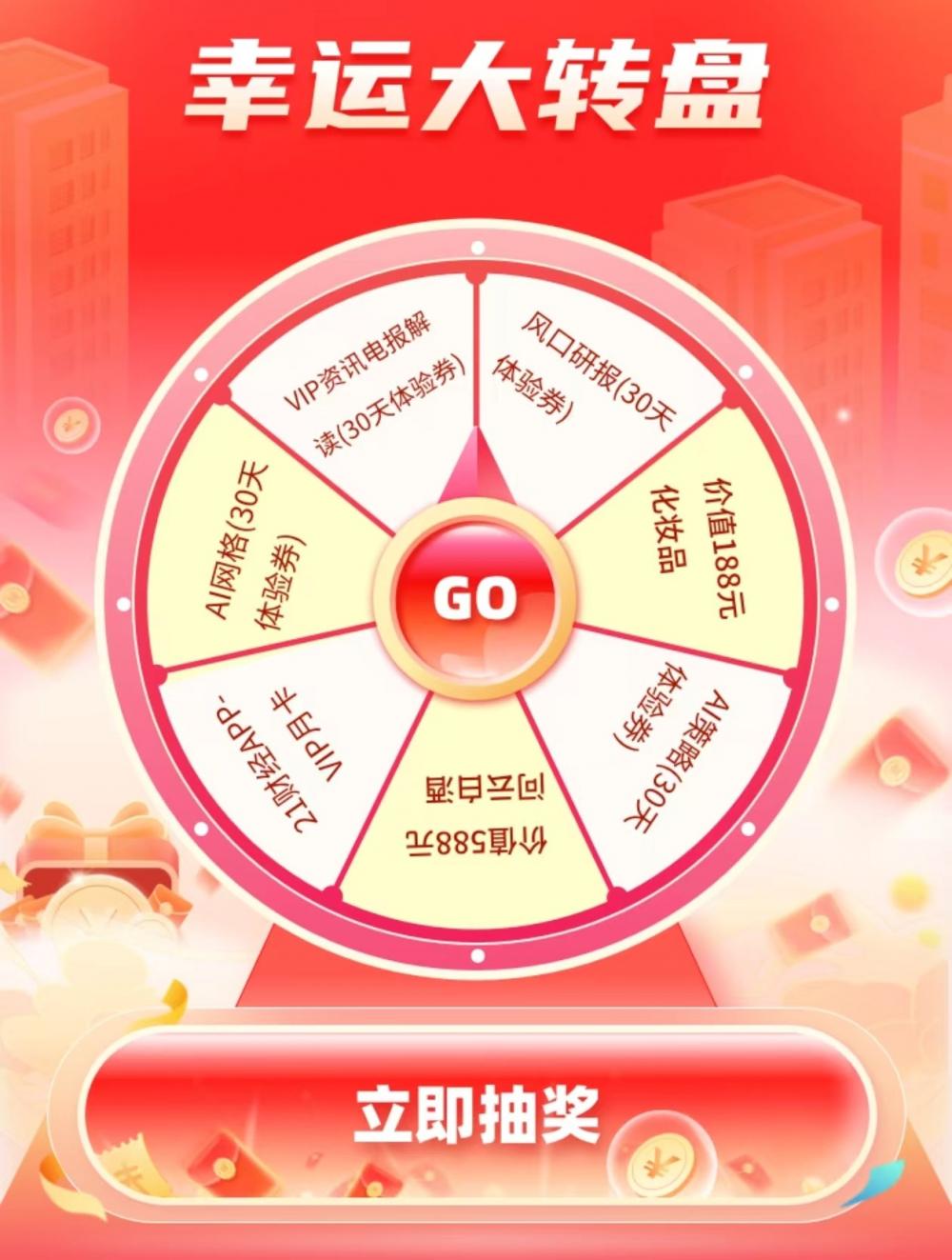 报名参赛即享幸运大转盘抽奖,188元化妆品、588元白酒等实物奖励即时派送!中奖率高达100%!
