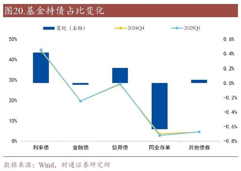此外,相较于2024年四季度,债券型基金减少了商业银行二级资本债的配置比重。