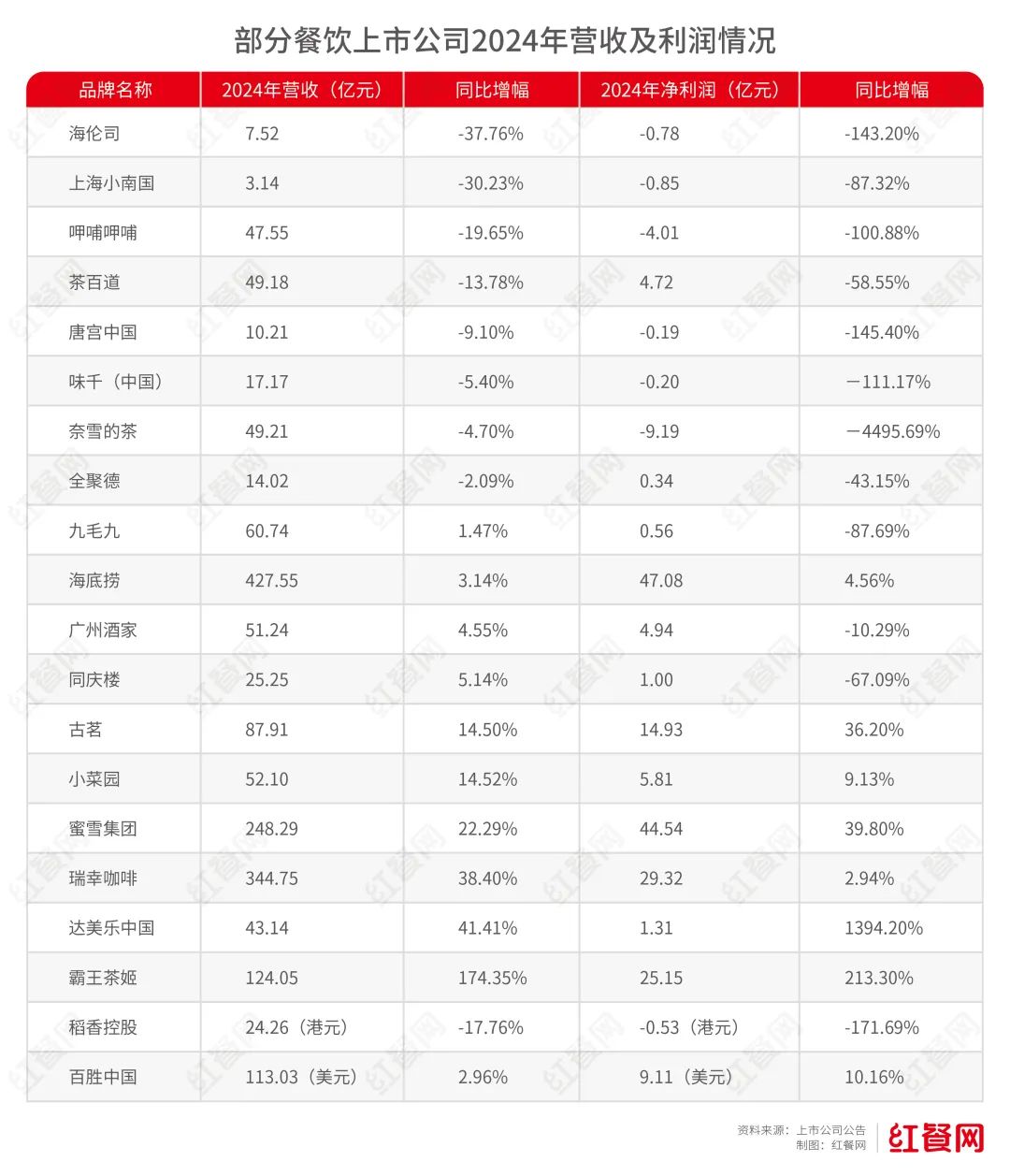红餐网统计的20家上市餐企中,有12家企业录得净利润同比下降,奈雪的茶、味千(中国)、海伦司、唐宫中国、稻香控股直接由盈转亏。