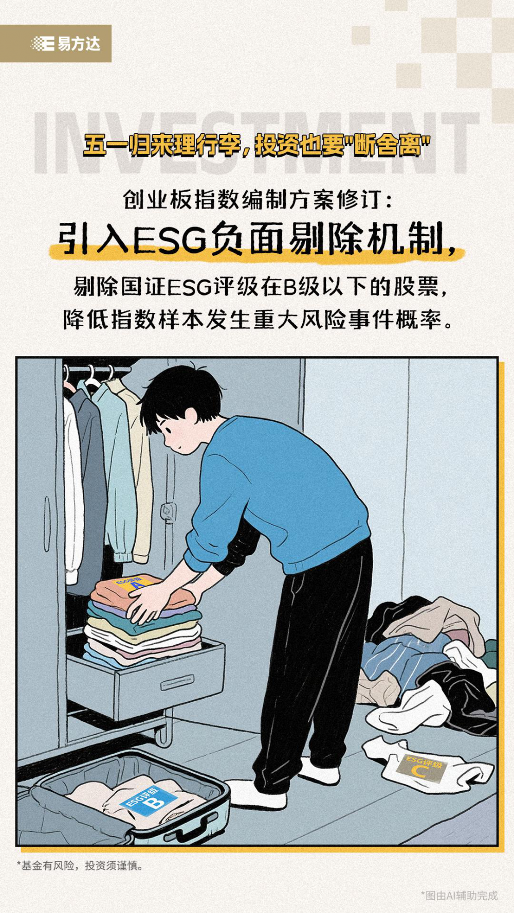 五一假期刚结束,大家都要收拾行囊重新启程,投资的航程也有新动向——深交所日前宣布对创业板指数的编制方案进行优化,引入个股权重上限机制与ESG负面剔除机制,有助于进一步提升指数表征作用和投资功能,更好满足各类投资者的资金配置需求。