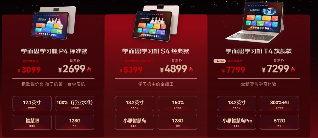 选在自家总部大楼办发布会,学而思这次一口气推出三款学习机,命名为P、S、T 三大系列,首发价2699元至7299元不等。