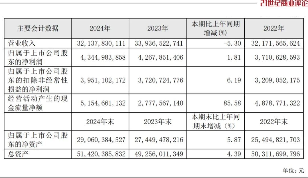 全年销量为753.8万千升,营收321.38亿元,皆同比下滑超过5%;净利润为43.45亿元,仅微增1.8%。