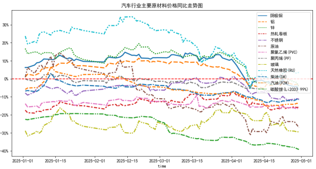 从成本端看,1季度主要的原材料价格同比表现比较分散,各有涨跌,成本端对企业盈利也不构成重大影响。目前看2季度各个原材料价格同比开始进入下降通道。