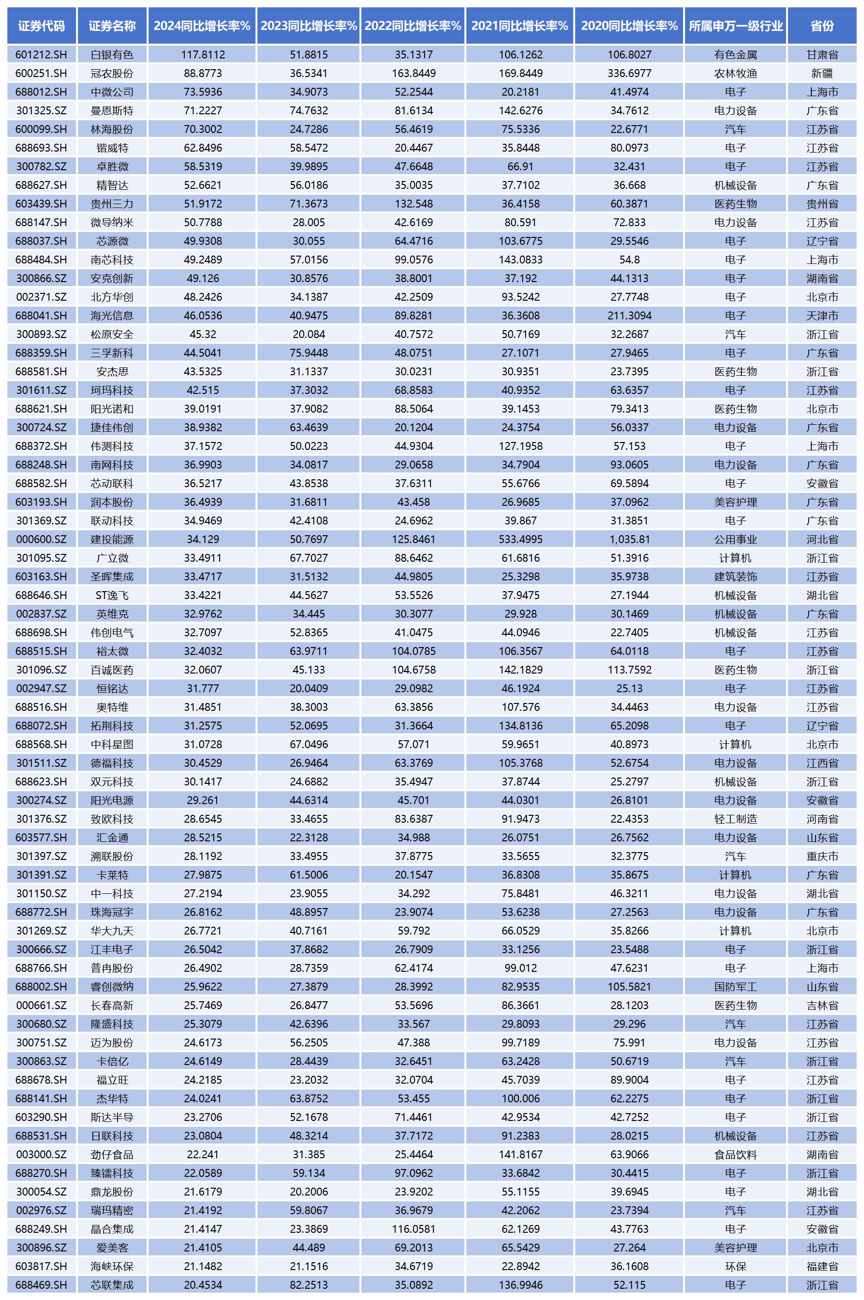 值得关注的是,2020年-2024年,A股共计10家上市公司连续5年研发费用同比增幅超过20%,堪称A股最“硬核”投入公司,具体包括冠农股份、白银有色、贵州三力、海光信息、伟测科技、南芯科技、芯动联科、阳光诺和、精智达、珂玛科技。