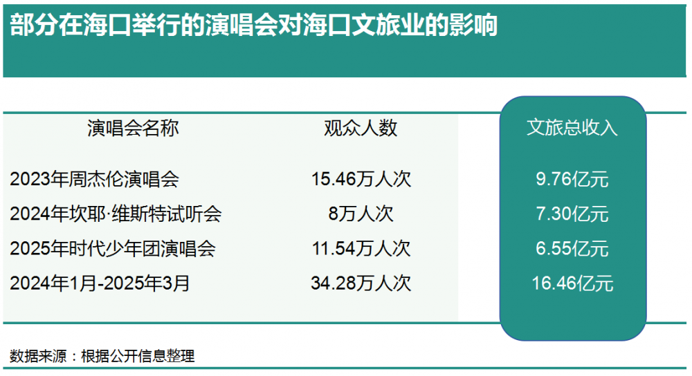 刚过去的“五一”假期,时代少年团“加冠礼”演唱会在五源河体育场连续开唱两场,强势拉动海口文旅经济增长。据统计,本次演唱会共吸引11.54万人次,游客总花费6.55亿元。其中场内观众7.01万人次,场外聚集市民游客共4.53万人次,95%来自岛外,演唱会观众及参与者占“五一”游客总人数的10.82%,贡献了假期44.8%的旅游收入,可以说,歌迷们撑起了海口“五一”假期文旅经济的“半边天”。