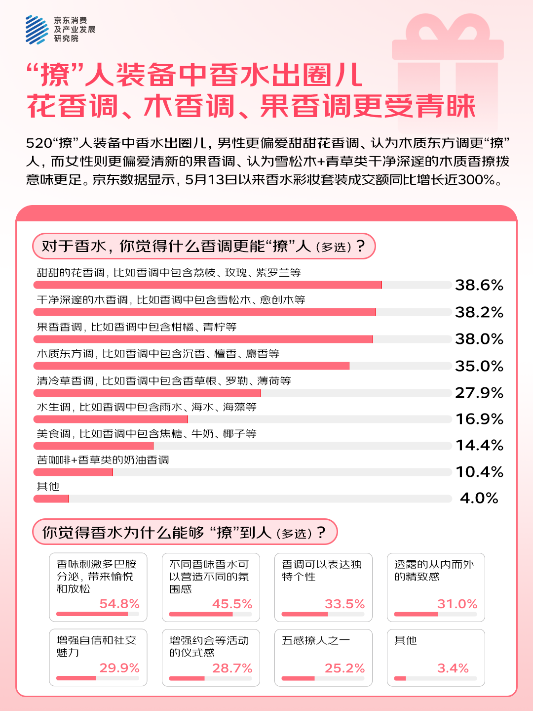 尽管男性与女性对香味的感受不同,但在香味为何“撩”人的问题上,回答却高度一致。他们认为,在520这样特殊的日子,“香味刺激多巴胺分泌,带来愉悦和放松”“不同香味香水可以营造不同的氛围感”“香调可以表达独特个性”。