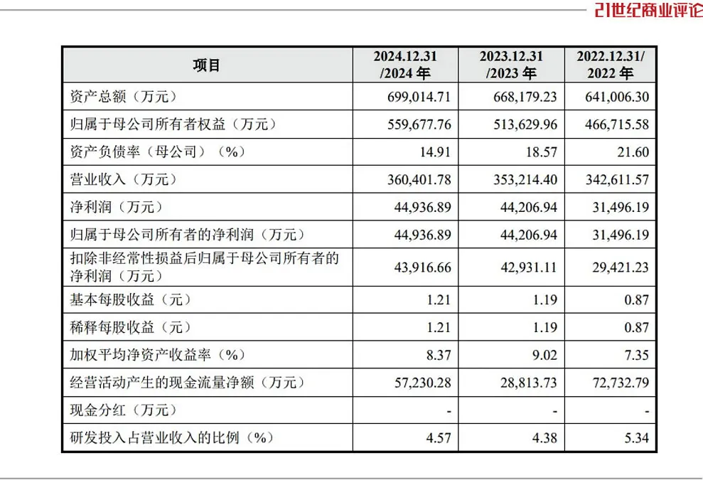 2024年,营收、净利分别为36.05亿元、4.49亿元,同比增幅均在2%左右;上一年,其净利同比增长四成。