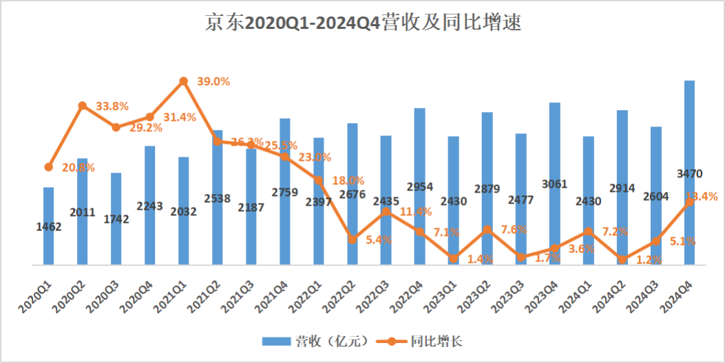 不怪刘强东如此焦虑,近年来,京东的市场地位正在逐渐下滑。尽管京东的利润规模逐年翻倍,但从2021年下半年开始,其营收增速已经走入下坡路。