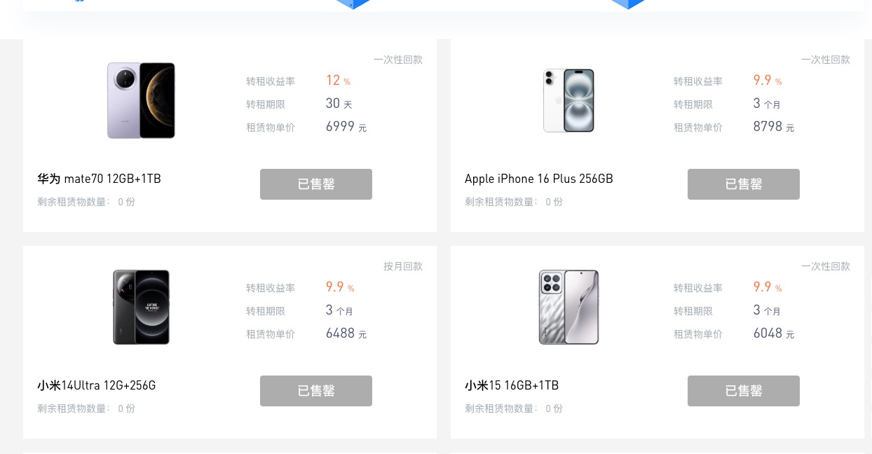 麦子租赁表示,该业务可以帮助用户降低新产品使用成本,也为部分有需求的用户提供商品购买的业务,同时为部分有需求的用户通过委托租赁的业务来赚取租金。从官网披露的租赁信息看,除一款华为手机转租收益率为12%,其他手机转租收益率均为9.9%。今年4月初,有投资人在网上爆料合同到期无法提现。