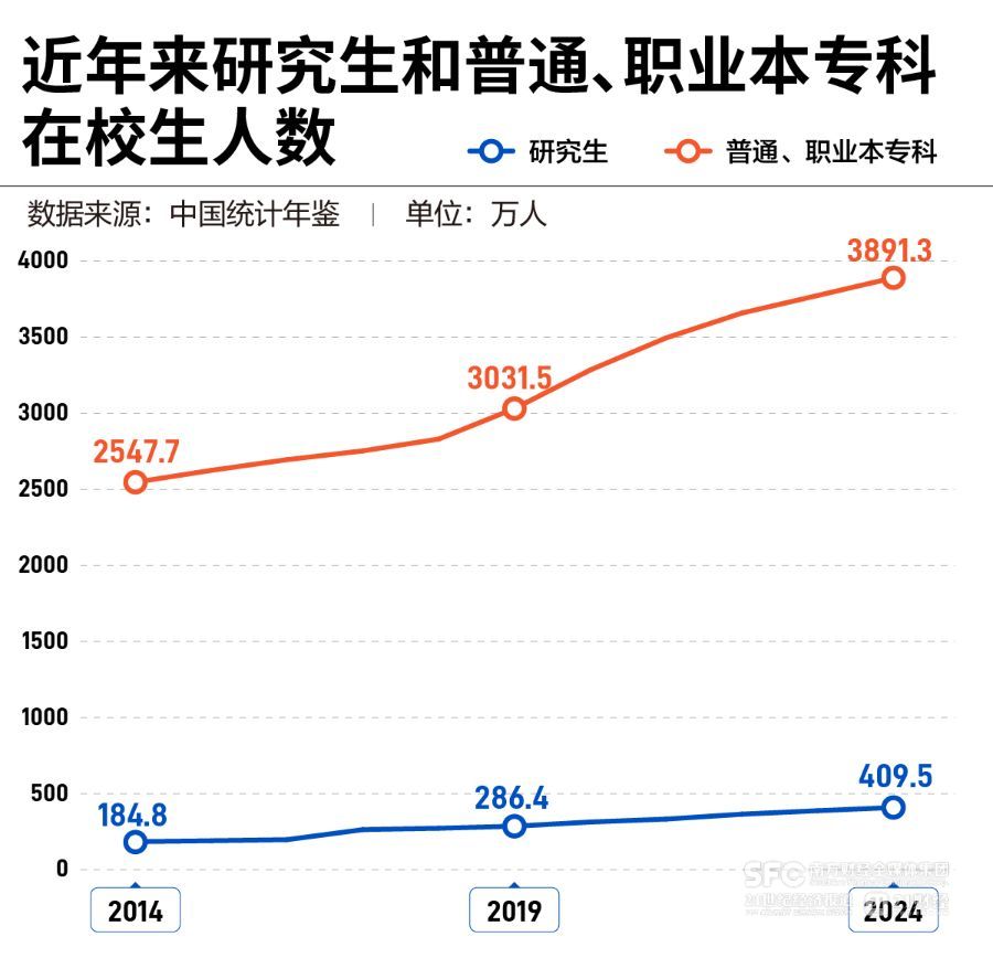 未来一段时间,研究生人数有望持续提升。《教育强国建设规划纲要(2024—2035年)》(以下简称《纲要》)提出,扩大研究生培养规模,稳步提高博士研究生占比,大力发展专业学位研究生教育。