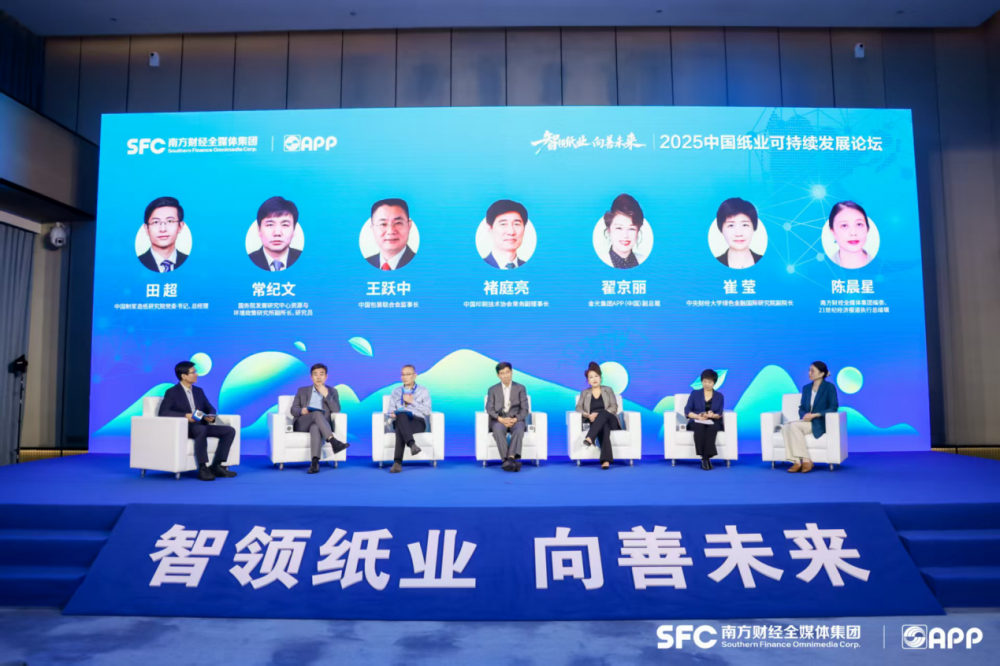论坛设置“中国纸业‘生态圈’可持续发展如何抓住风口”圆桌对话环节,由中国制浆造纸研究院党委书记、总经理田超主持,翟京丽、国务院发展研究中心资环所副所长、研究员常纪文,中国印刷技术协会常务副理事长褚庭亮,中国包装联合会监事长王跃中,中央财经大学绿色金融国际研究院副院长、中国环境科学学会碳达峰碳中和专业委员会委员崔莹,南财集团编委、21世纪经济报道执行总编辑陈晨星展开讨论。
