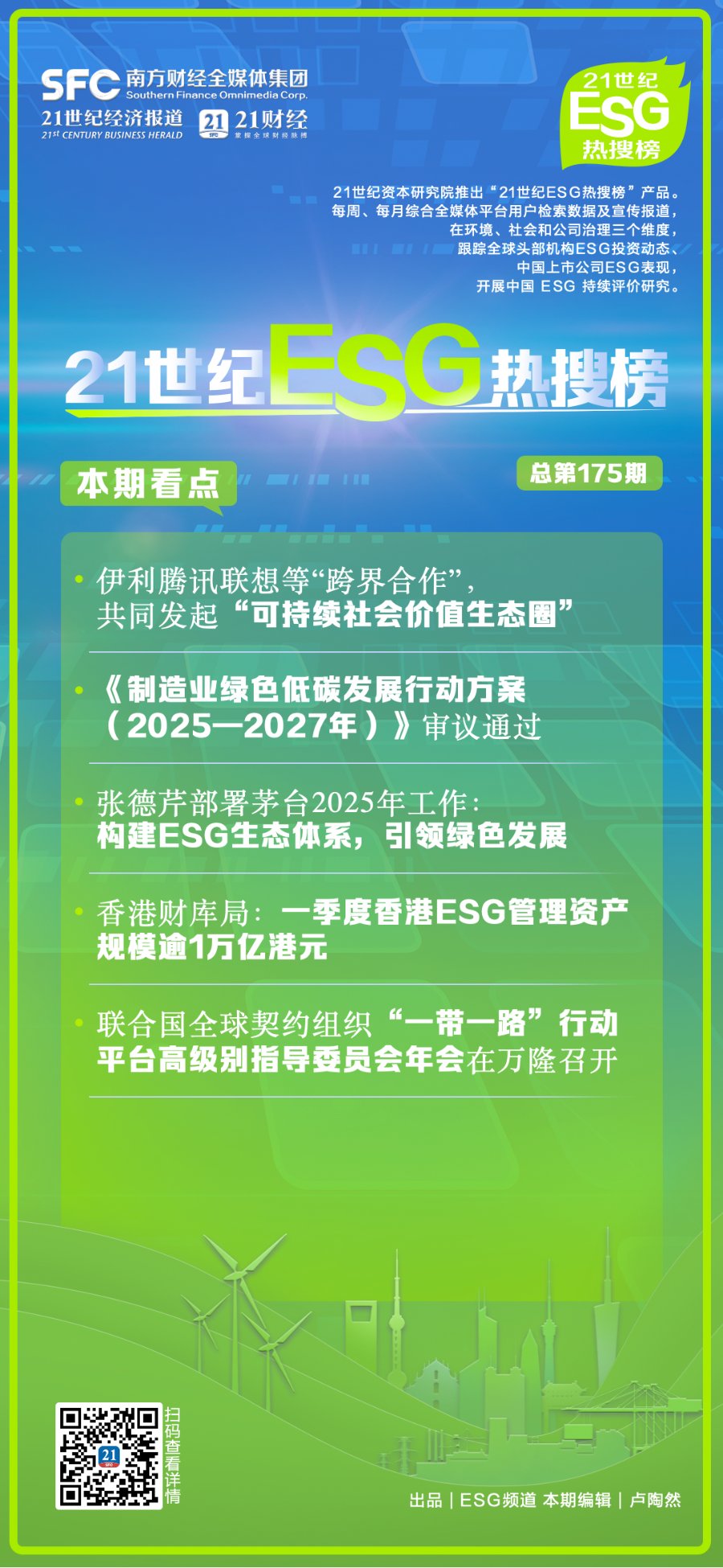 21世纪ESG热搜榜(第175期)丨伊利腾讯联想等共同发起“可持续社会价值生态圈”;张德芹:构建ESG生态体系,引领绿色发展