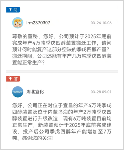 今年3月,市场传言湖北宜化将于2025年6月启动宜昌分公司4万吨季戊四醇装置的搬迁工作,新产能预计2026年4月之后才能重新投产。