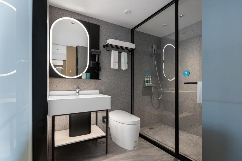 城市便捷4.0的多处“细节控”对标中档酒店。在空间设计中,酒店的客房以米黄色的木纹与大地灰为主色调,对标行业中高档酒店产品标准的深睡床垫,搭配羽绒被、缓压记忆枕及中高档的布草,让旅客进门就想卸下背包瘫倒在床上;灯光设计更是对标国际的星级酒店,和国内的中高档的酒店的标准,将色温保持在2700K与3000K之间,并且提供六种灯光模式,追剧助眠一键切换;洗浴间中,搭配智能马桶和多功能淋浴花洒,同时采用放大版洗浴用品包装,近视患者再也不会出现两眼一抹黑的情况。