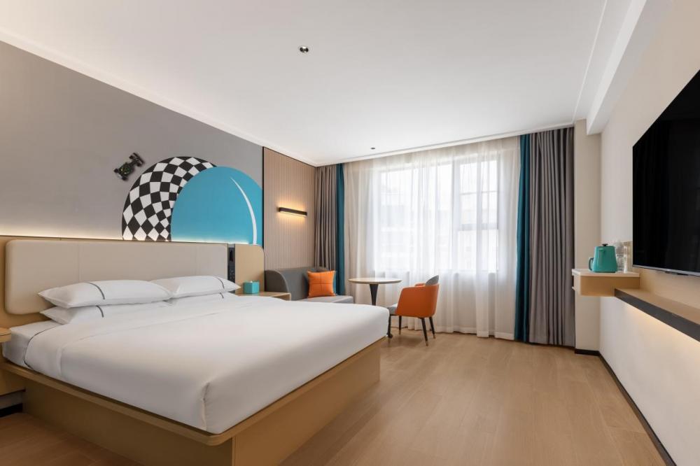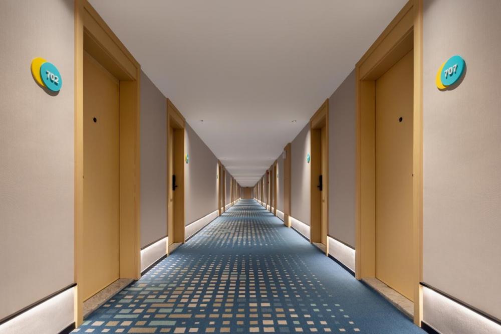 大众酒店消费者的核心痛点是隔音与睡眠体验,这也逼出了“六维睡眠文化”的核心解决方案:走廊铺设12mm吸音地毯,客房隔音性能升级,可降低至40分贝。同时,搭配遮光率达99.9%的遮光窗帘,从听觉到视觉全方位隔绝外界干扰;床整体增高8厘米,床垫升级为独立袋弹簧,尴尬的“嘎吱声”一去不复返,年轻游客轻松实现“一觉睡到大天亮”的心愿。