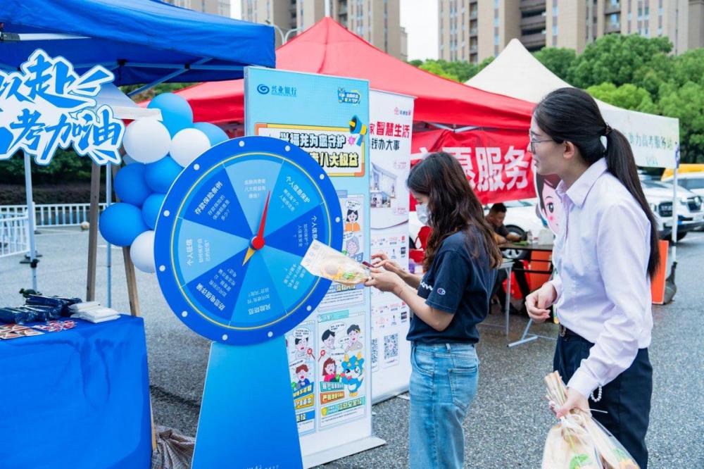 高考期间,兴业银行苏州分行统筹辖内13家支行,在全市多个高考考点开展“金融知识万里行”专项活动,通过“助考驿站”“安全锦囊”“消保转盘”等创新形式,将金融风险防范知识融入高考服务场景,为考生家庭送上实用防护与暖心关怀。