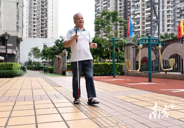 视障人士在社区生活愈加便利、安全,冯觉芳独立出门已轻车熟路,每天都会出门散散心。