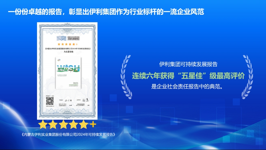 峰会现场,中国社科院教授、责任云研究院院长、鲸牛科技CEO钟宏武对伊利集团的系列报告给予了高度评价。他指出,伊利集团可持续发展报告已经6年蝉联“五星佳”可持续发展报告最高评级,该项成绩的取得得益于伊利集团在可持续发展工作中的突出表现,以及在ESG领域取得的斐然成绩。
