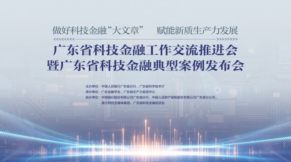 为深入贯彻中央金融工作会议关于 “做好科技金融大文章” 的重要部署和七部门《政策举措》相关要求,由中国人民银行广东省分行、广东省科学技术厅主办,广东金融学会、广东省生产力促进中心承办,中国银行广东省分行、人保财险广东省分公司、南方财经全媒体集团、广东省科技金融促进会协办的 “广东省科技金融工作交流推进会暨广东省科技金融典型案例发布会” 将于6月19日在广州举行。