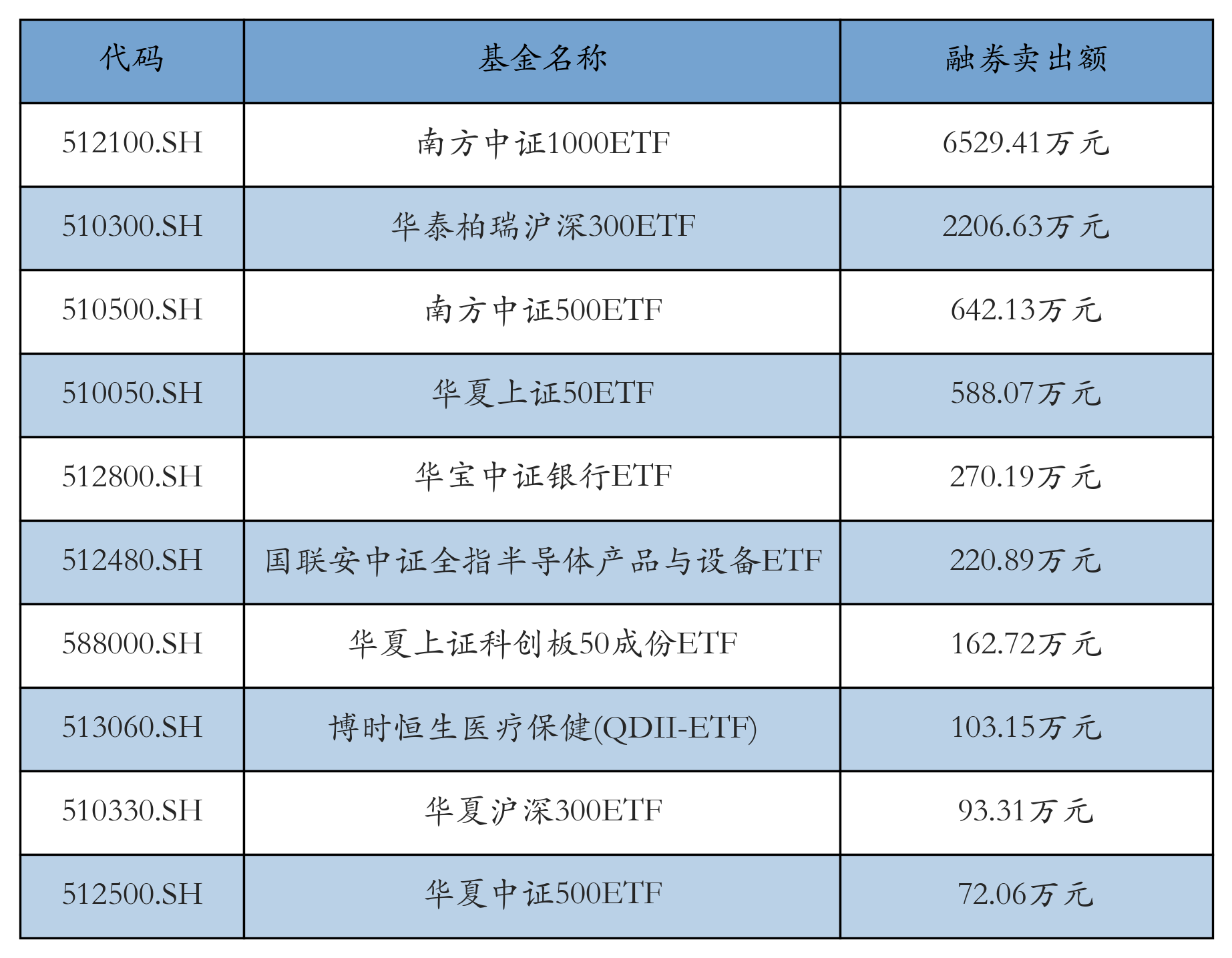 ETF融券卖出额