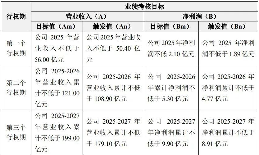 根据其公布的股票期权激励计划,2025-2027年,三年合计营收将不低于199亿元,年均复合增长率约在16%以上,三年累计净利则不低于9.9亿元。