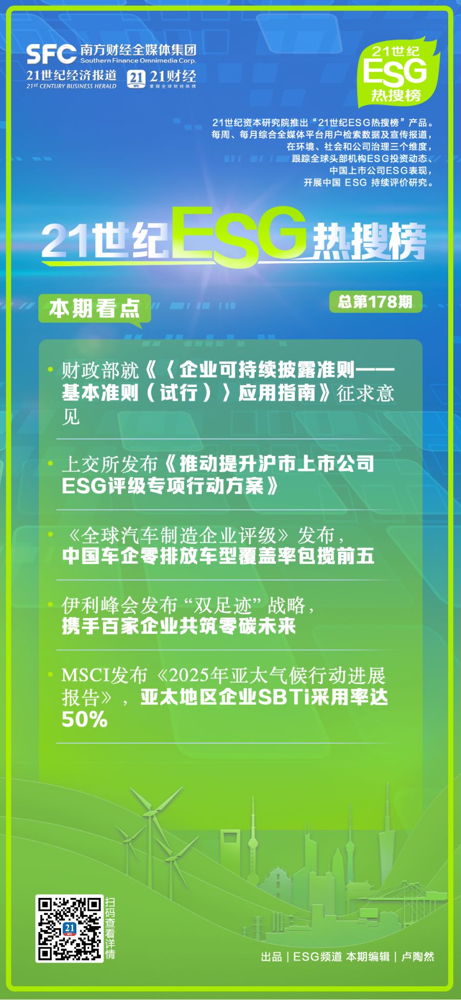 21世纪ESG热搜榜(第178期)丨财政部就《〈企业可持续披露准则——基本准则(试行)〉应用指南》征求意见;《全球汽车制造企业评级》发布