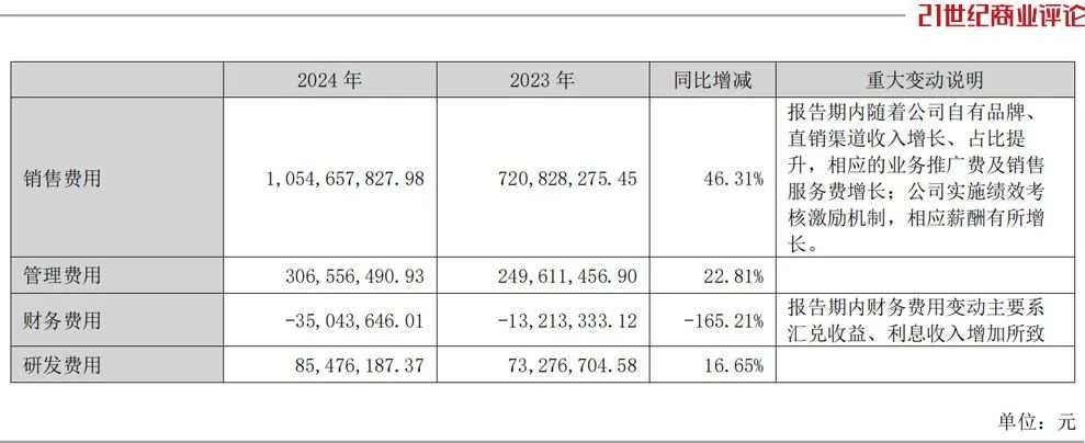 2018年至2024年,公司的销售费用由1.67亿元增至10.55亿元,年复合增长率约35%,超过总营收增速。去年,其销售费用率创下新高,达20.11%。