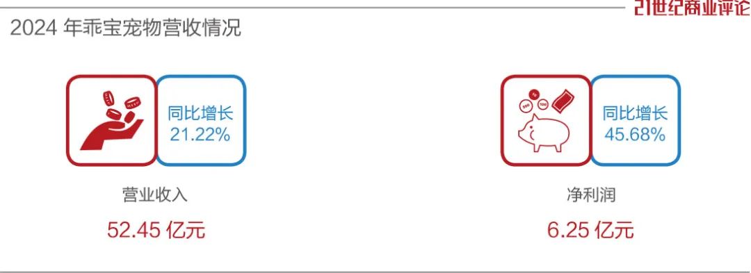 2024年,秦华的乖宝宠物,营收52.45亿元,净利6.25亿元,大涨45.68%,在上市宠物食品企业中居首位。