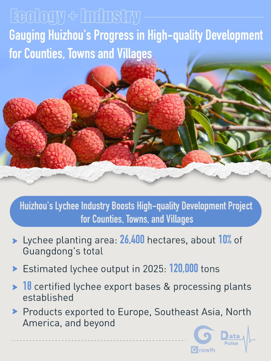 Huizhou, located in southeastern Guangdong, is a crucial node city in the Guangdong-Hong Kong-Macao Greater Bay Area (GBA). As a core part of the pioneer zone and a major lychee-producing region in Lingnan, Huizhou is prioritizing the zone's development by actively expanding lychee export markets. This drives integrated progress in industrial growth, county revitalization, and people's livelihood, aiming to create a model for modernizing counties, towns, and villages.