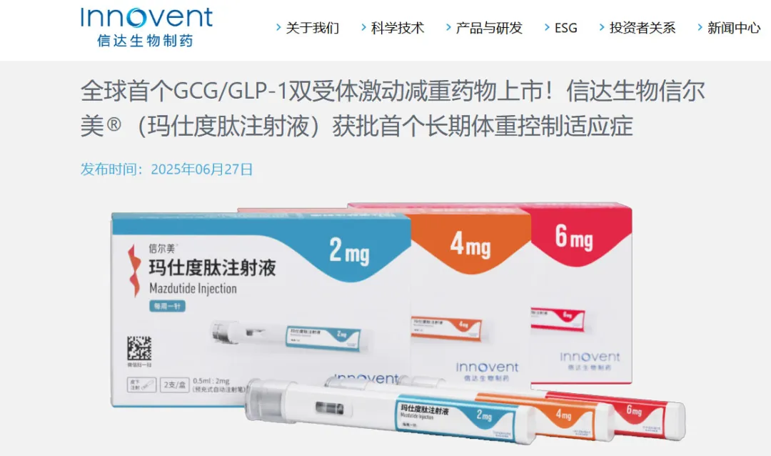 6月27日,他签发公告宣布,信尔美®(玛仕度肽注射液)新药上市申请获批,用于成人肥胖或超重患者的长期体重控制。