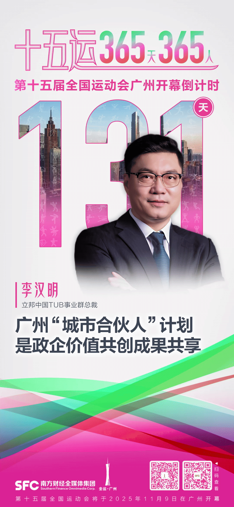 第十五届全国运动会将于2025年11月在粤港澳三地举行。这是一场体育盛会,更是推动全民健身、促进体育事业高质量发展的重要契机。南方财经全媒体集团与十五运会和残特奥会广州赛区执委会在十五运会开幕倒计时一周年之际,推出“十五运365天365人”专栏,聚焦运动员、企业家、专家学者、体育爱好者及社会公众的全运故事与全运期待,让更多人了解和关注十五运,生动呈现我国体育精神、城市活力和文化魅力。