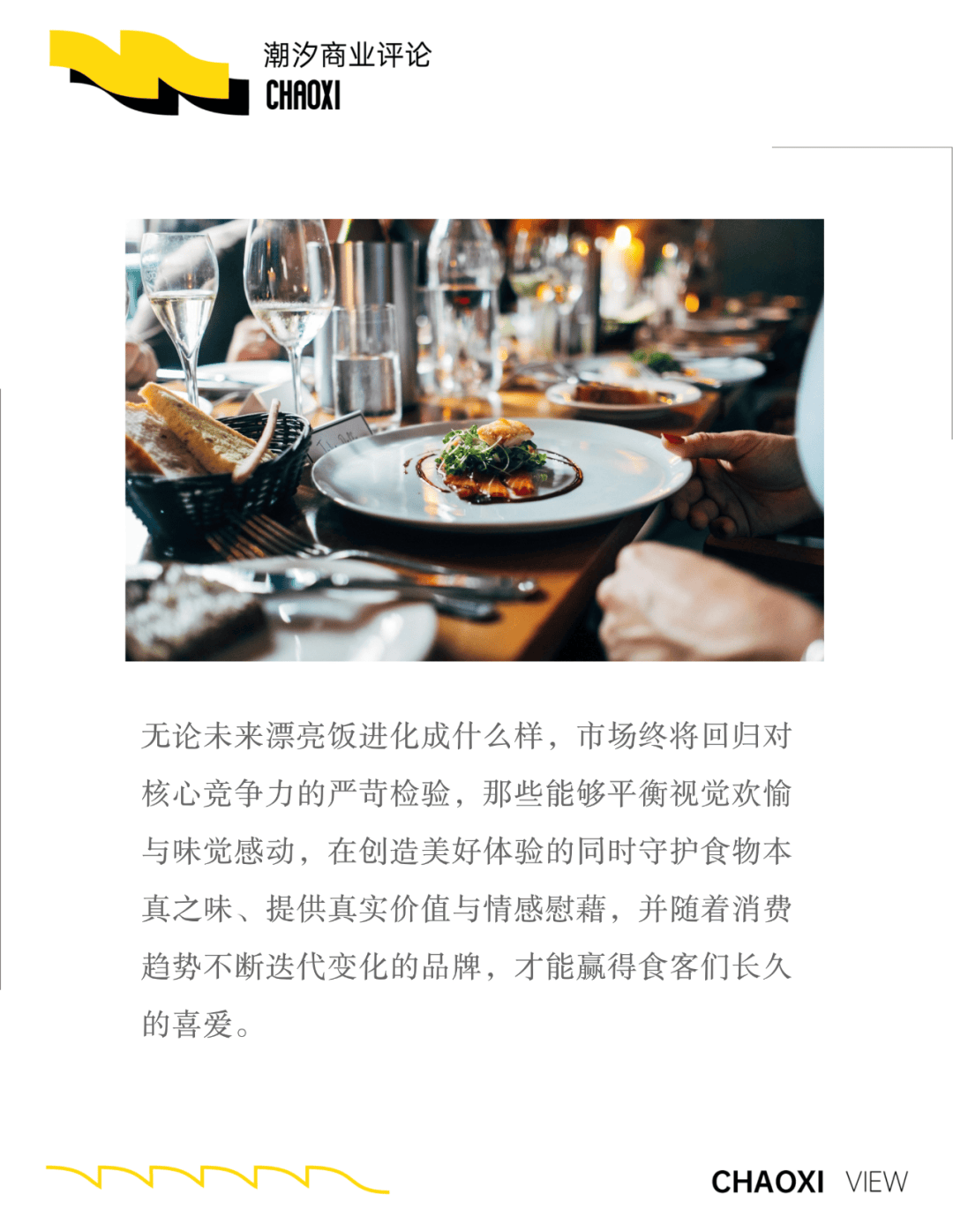 正如吃饭的最高境界始终是“人间有味是清欢”,无论未来漂亮饭进化成什么样,市场终将回归对核心竞争力的严苛检验,那些能够平衡视觉欢愉与味觉感动,在创造美好体验的同时守护食物本真之味、提供真实价值与情感慰藉,并随着消费趋势不断迭代变化的品牌,才能赢得食客们长久的喜爱。毕竟,再精妙的仪式与布景,最终都需让位于舌尖上那一瞬间真实而纯粹的雀跃。