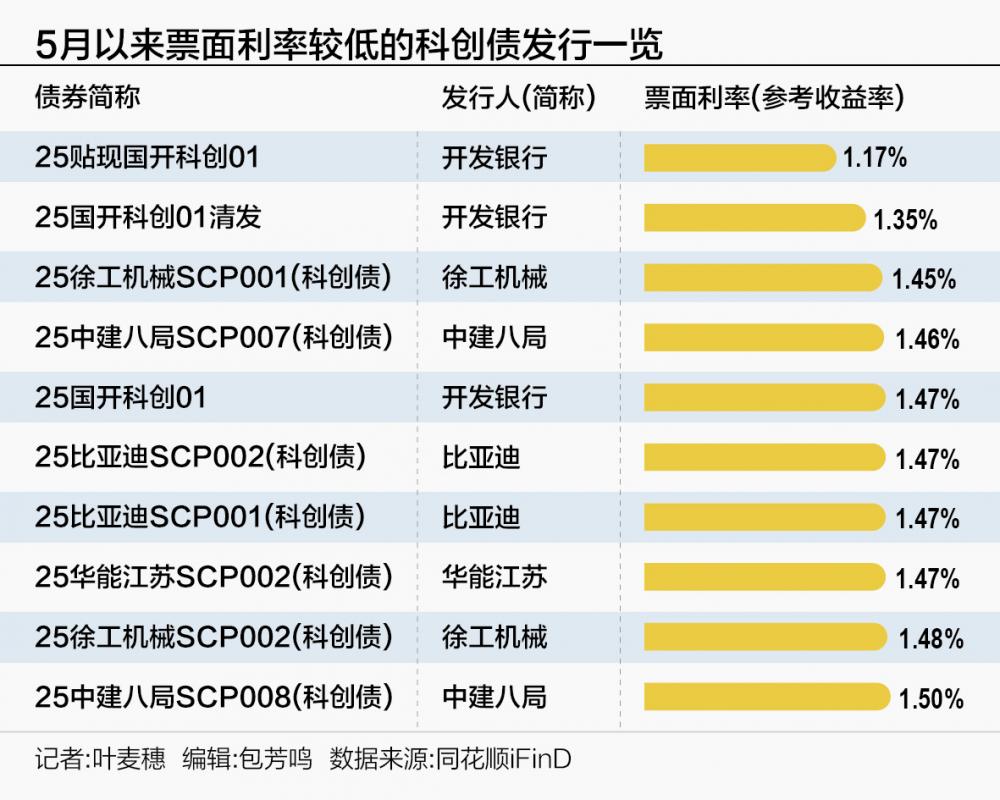 在低利率环境和政策支持下,此轮科创债的发行利率相当“划算”,多数债券的利率都在2%以下。
