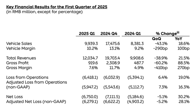 据蔚来汽车财报,2025年第一季度,蔚来公司共交付42094辆汽车,同比增长40.1%,环比下降42.1%,其中包括蔚来品牌27313辆和乐道品牌14781辆。
