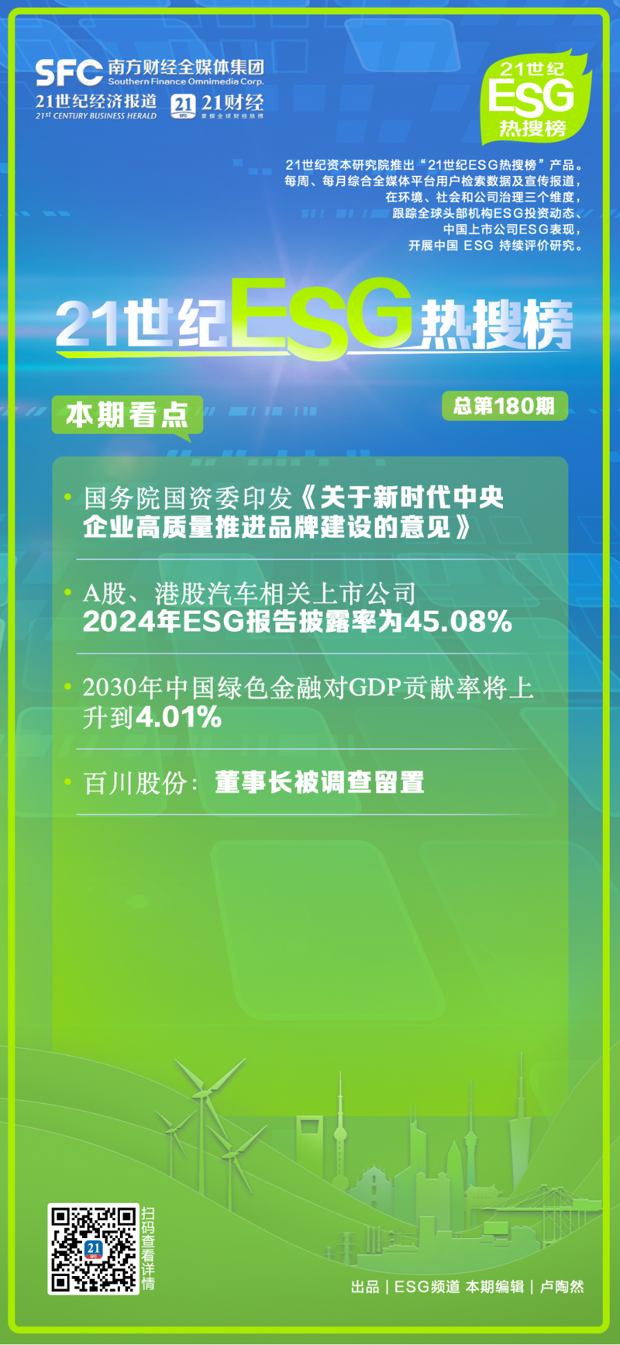 ESG热搜榜(180期)|A+H股车企近半披露ESG报告
