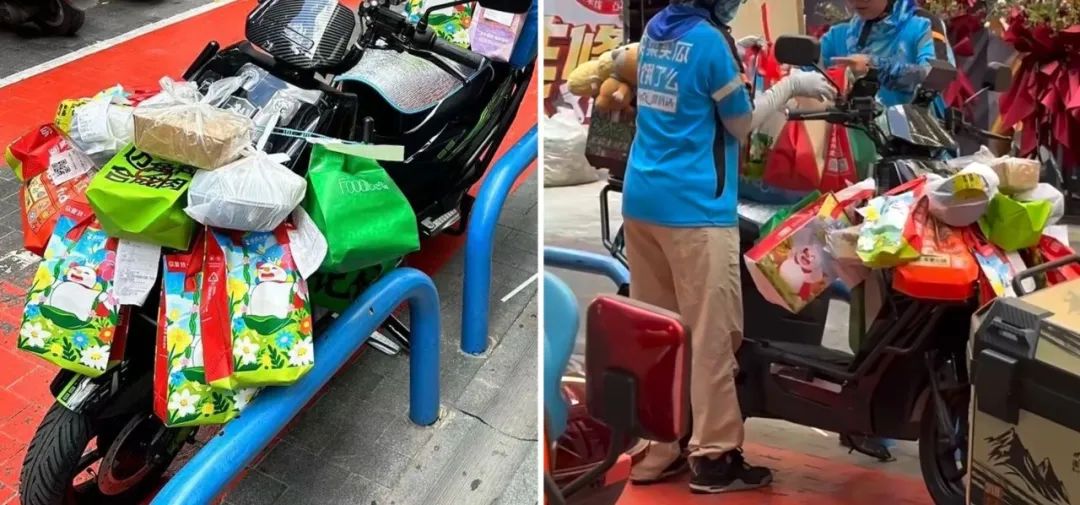 甚至还有不少门店外堆满“无人认领”的奶茶,工作人员称因订单量太大,顾客未及时取货或退单所致……