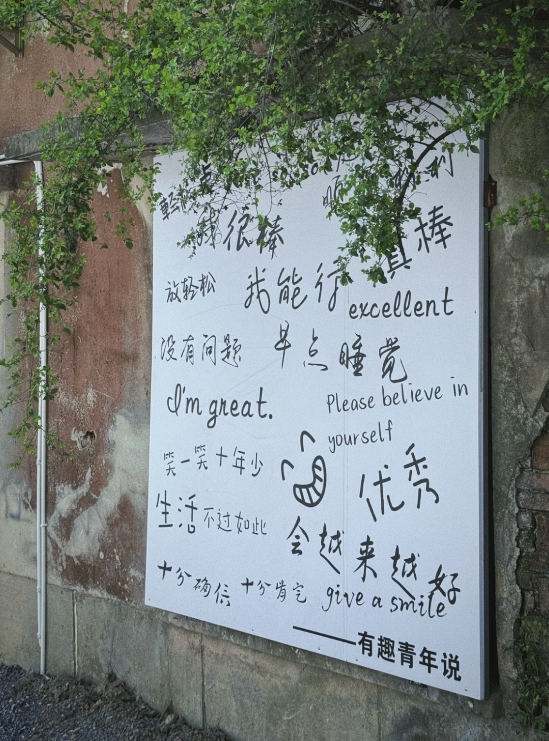 项目不大,因一片蓝绿色的湖和矿山做背景,显得很有调性,园区到处都是醒目的标语和人工布景,具有很强的视觉冲击,也彰显着目标客群(25-40岁职场人士)的心声,力求引发情感共鸣和心灵慰藉,但多少让人感觉有些刻意。