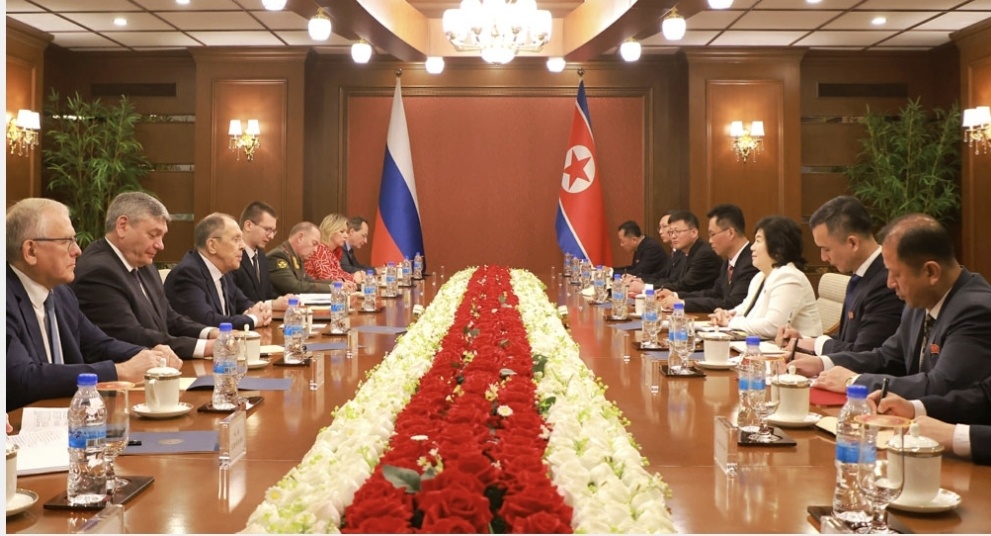 当地时间12日,俄罗斯外交部长拉夫罗夫与朝鲜外务相崔善姬在朝鲜元山进行了朝俄两国第二轮外长级战略对话。在对话中,双方重申在国际舞台上加强相互合作,维护国家主权、领土完整和国际正义的战略协调立场。