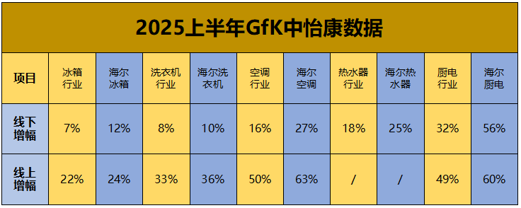 2025家电H1:海尔智家冰、洗、空等实现增速第一