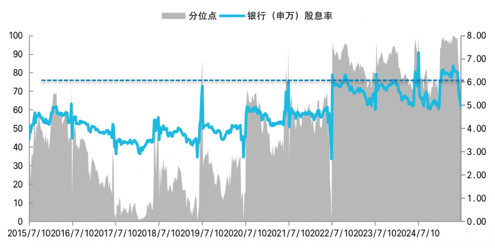 但从股息率来看,其“真金白银”的分红回报依旧具备吸引力。在经历一轮持续上涨后,银行整体的股息率仍有5%,处于近10年70%分位的较高水平。因此,对于追求稳健股息回报的长期投资者而言,其长期配置价值仍然值得关注。