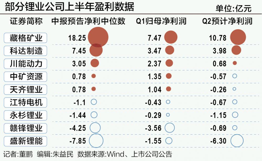 比如有望实现扭亏的天齐锂业,公司上半年预计盈利亦不过0~1.55亿元。