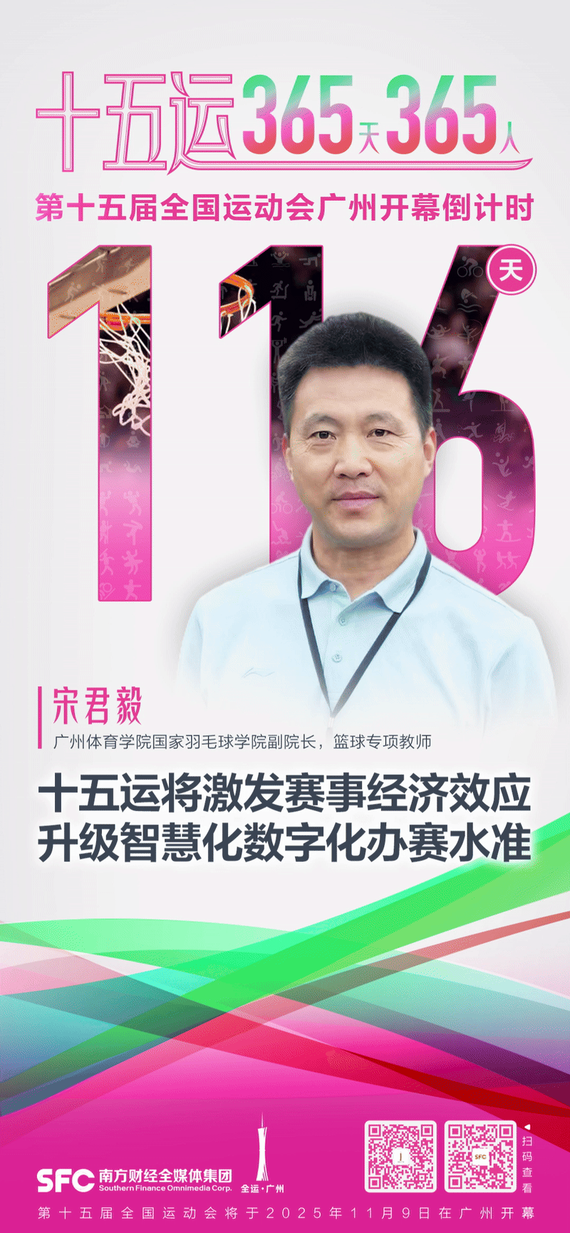 第十五届全国运动会将于2025年11月在粤港澳三地举行。这是一场体育盛会,更是推动全民健身、促进体育事业高质量发展的重要契机。南方财经全媒体集团与十五运会和残特奥会广州赛区执委会在十五运会开幕倒计时一周年之际,推出“十五运365天365人”专栏,聚焦运动员、企业家、专家学者、体育爱好者及社会公众的全运故事与全运期待,让更多人了解和关注十五运,生动呈现我国体育精神、城市活力和文化魅力。