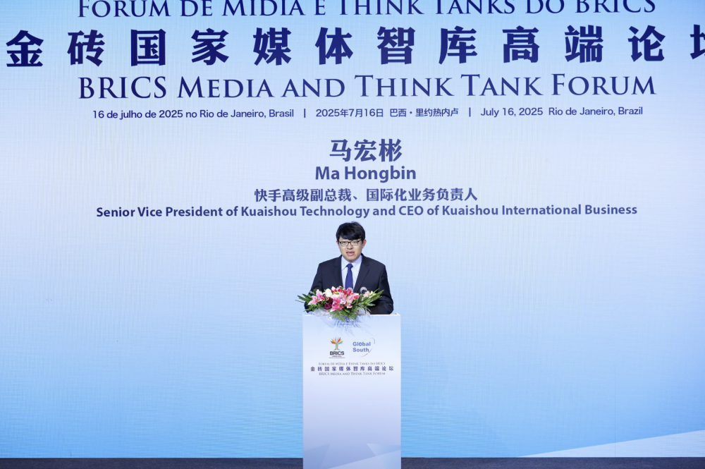 7月16日,以“共创金砖未来 共谱南方新篇”为主题的金砖国家媒体智库高端论坛在巴西里约热内卢举行。快手高级副总裁、快手国际化业务负责人马宏彬受邀在开幕式发言,深度分享了快手海外版Kwai在巴西市场的探索与实践,立体展现了中国科技企业对于推动全球南方国家数字经济发展的观察和思考。