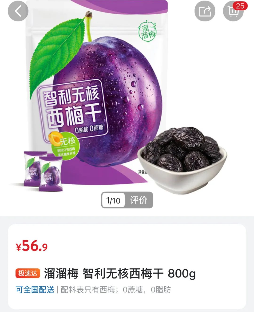 另一款颇受争议的产品是溜溜梅智利无核西梅干,这款产品给消费者的“平替感”就更强了。